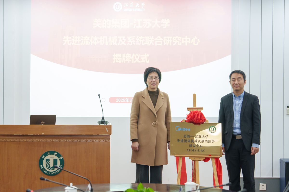 李红和彭勃共同为美的集团—奇异果体育先进流体机械及系统联合研究中心揭牌,美的集团李忠华、能源与动力工程学院院长潘剑锋代表共建双方现场签约。