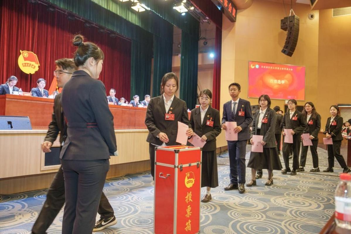 在第二次全体会议上,大会依次审议通过了大会选举办法(草案)、大会选举工作人员名单(草案),并选举产生共青团奇异果体育第七届委员会;会议还审议通过了工作报告决议(草案),并宣读了《奇异果体育第七次团代会倡议书》。大会在《国际歌》声中闭幕。