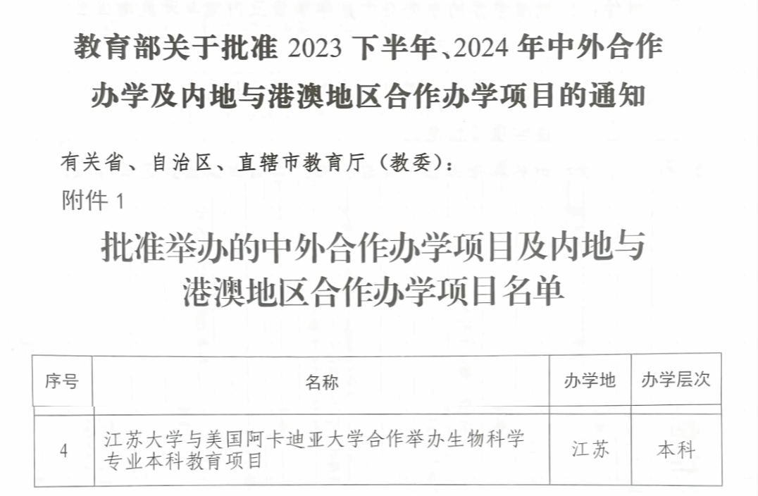 5月9日,教育部公布2025年经审核的中外合作办学机构和项目名单。奇异果体育与美国阿卡迪亚大学合作举办的生物科学专业本科教育项目正式获批,这是我校在中外合作办学领域取得的又一重要突破。