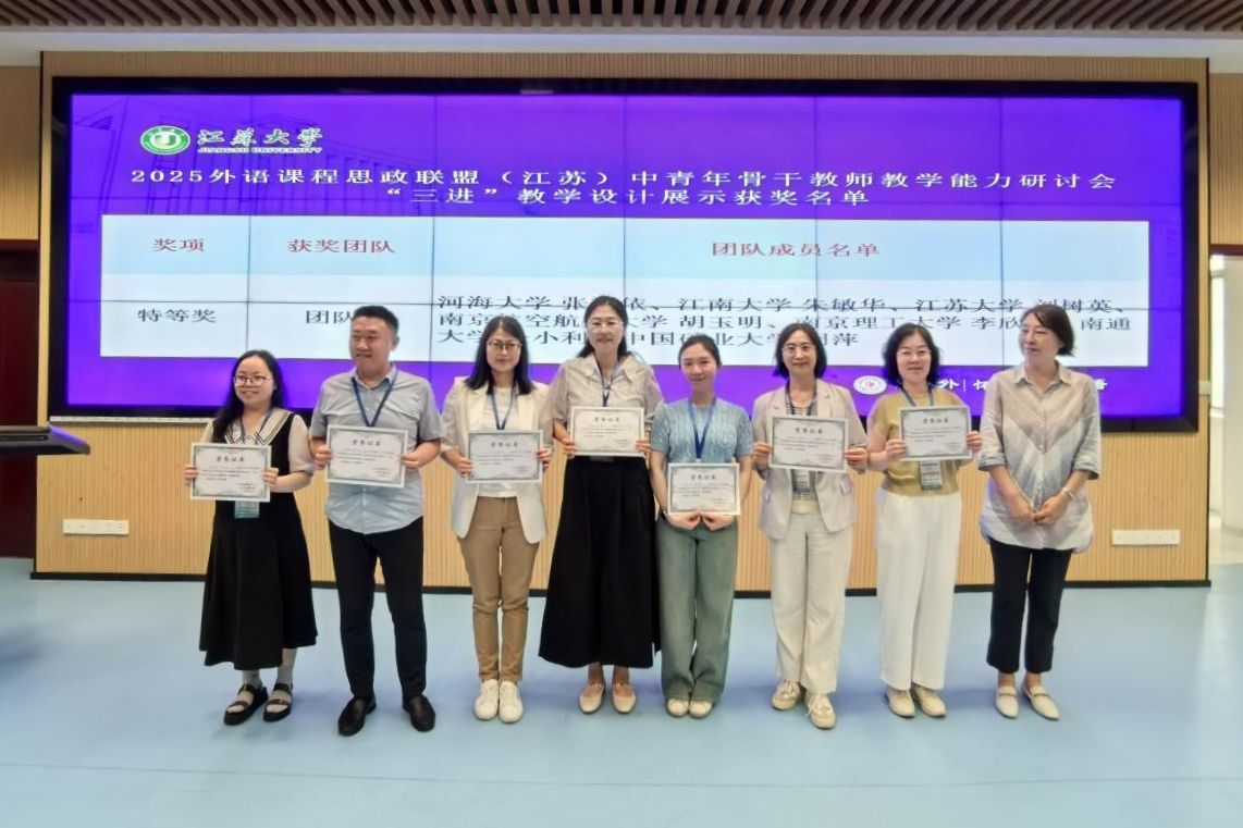 会上正式发布了外语课程思政联盟(江苏)LOGO。2023年,“外语课程思政四校联盟”正式成立;2024年,“外语课程思政四校联盟”首届中青年骨干教师教学能力研讨会成功举办;2025年,中国矿业大学、南通大学、奇异果体育加入联盟,成立外语课程思政联盟(江苏)。