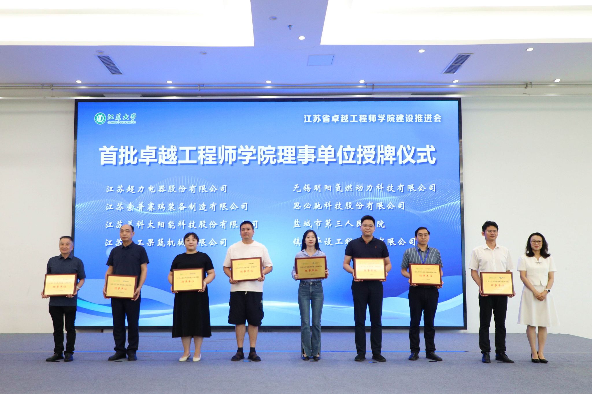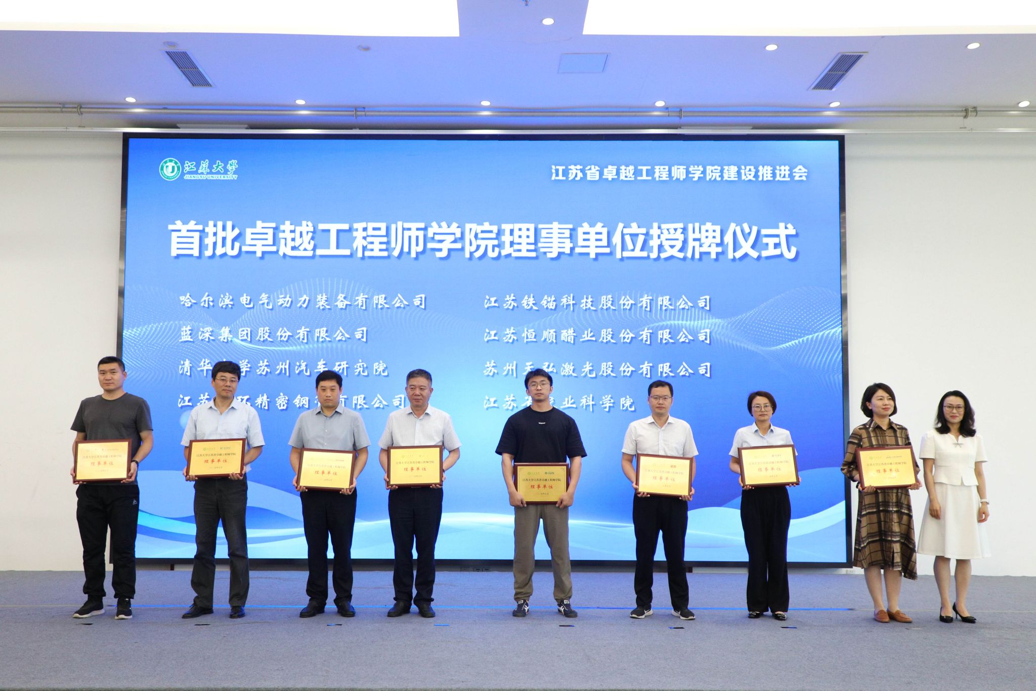 7月3日,奇异果体育江苏省卓越工程师学院建设推进会暨理事会成立会举行。副校长、研究生院院长、卓越工程师学院院长蔡英凤,中汽院(江苏)汽车工程研究院有限公司、国家农业信息化工程技术研究中心、南水北调东线江苏水源有限责任公司、中国科学院工程热物理研究所、广西玉柴机器股份有限公司、中国航发贵州红林航空动力控制科技有限公司、江苏省农业科学院、苏州汇川联合动力系统股份有限公司、江苏沃得农业机械股份有限公司、蓝深集团股份有限公司等30多家央国企和民企单位代表、19家卓工项目建设团队的校内外负责人,人事处、教务处、科技处、产学研处、学工处、各学院主要负责人等100余人出席会议。会议由研究生院常务副院长、卓越工程师学院执行院长朱孝勇主持。