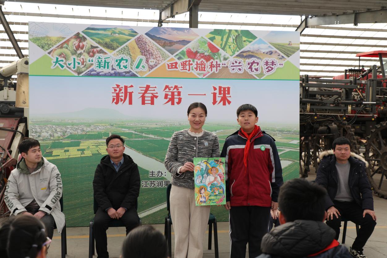 活动现场还同步举行了“未来农场‘慧种田’”绘画创作活动,学生们用手中的画笔表达了对未来农场发展的畅想和展望,并将画作交到了全国人大代表、江苏润果农业发展有限公司董事长魏巧的手中。“我们将时刻牢记‘新禾’先锋队的责任和使命,树立远大的理想,立志成为有情怀、有担当、有创新的‘新农人’,为实现农业强国梦贡献自己的力量。”孩子们的话语掷地有声。