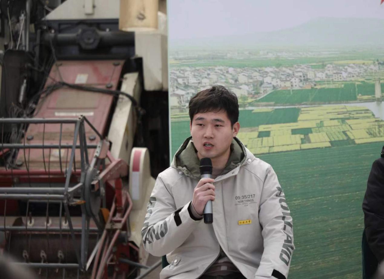 奇异果体育农业机械化工程2022级硕士生、挑战杯特等奖作品参与者李启滨也受邀来到现场和“新禾”先锋队的大中小学生们互动交流。“我的研究方向是产量在线检测技术,最终的落脚点是收获机的智能化。我的导师徐立章告诉我们,要把论文写在大地上,我们的科研成果不仅能够真的有用,还要解决实际的农业生产问题。这就要求我们必须通过田间试验采集到最准确的数据。”谈及未来的发展,李启滨表示,将尽自己最大的努力做出更多的科研成果,也希望在毕业后继续跟随导师攻读博士学位,为我国的农机事业添砖加瓦。