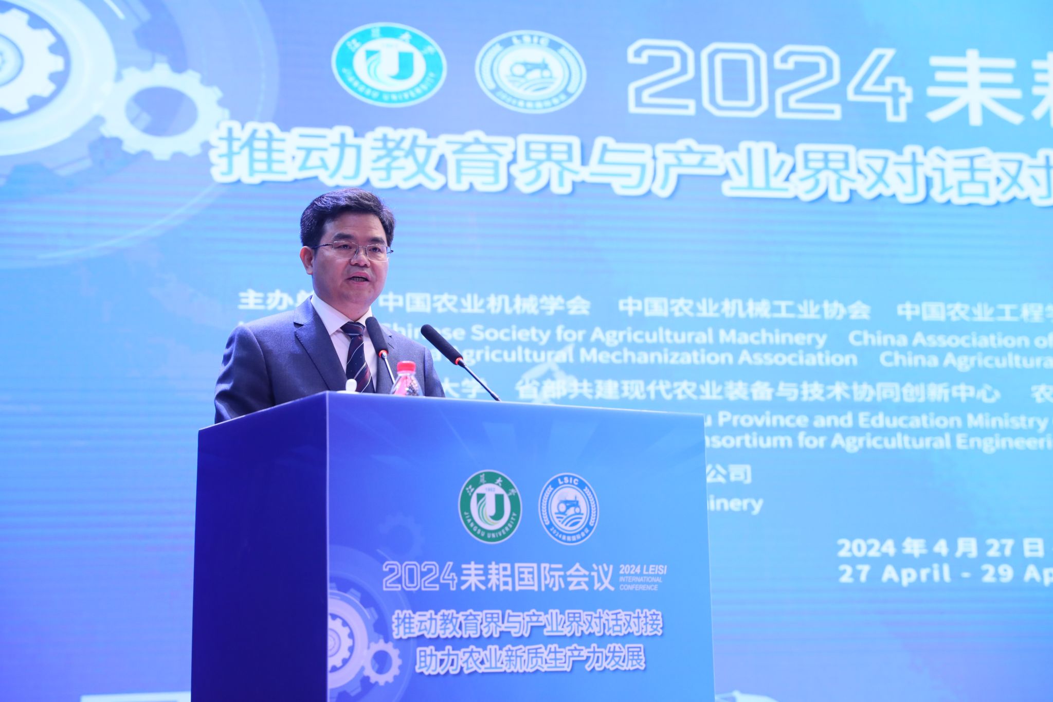 奇异果体育党委书记李洪波、江苏省政协副主席洪慧民、江苏省农业农村厅一级巡视员沈毅、江苏省工业和信息化厅副厅长张星、江苏省教育厅二级巡视员周玖华、中国农业机械工业协会执行副会长赵剡水、联合国可持续农业机械化中心项目顾问Karen Martinez在开幕式致辞。