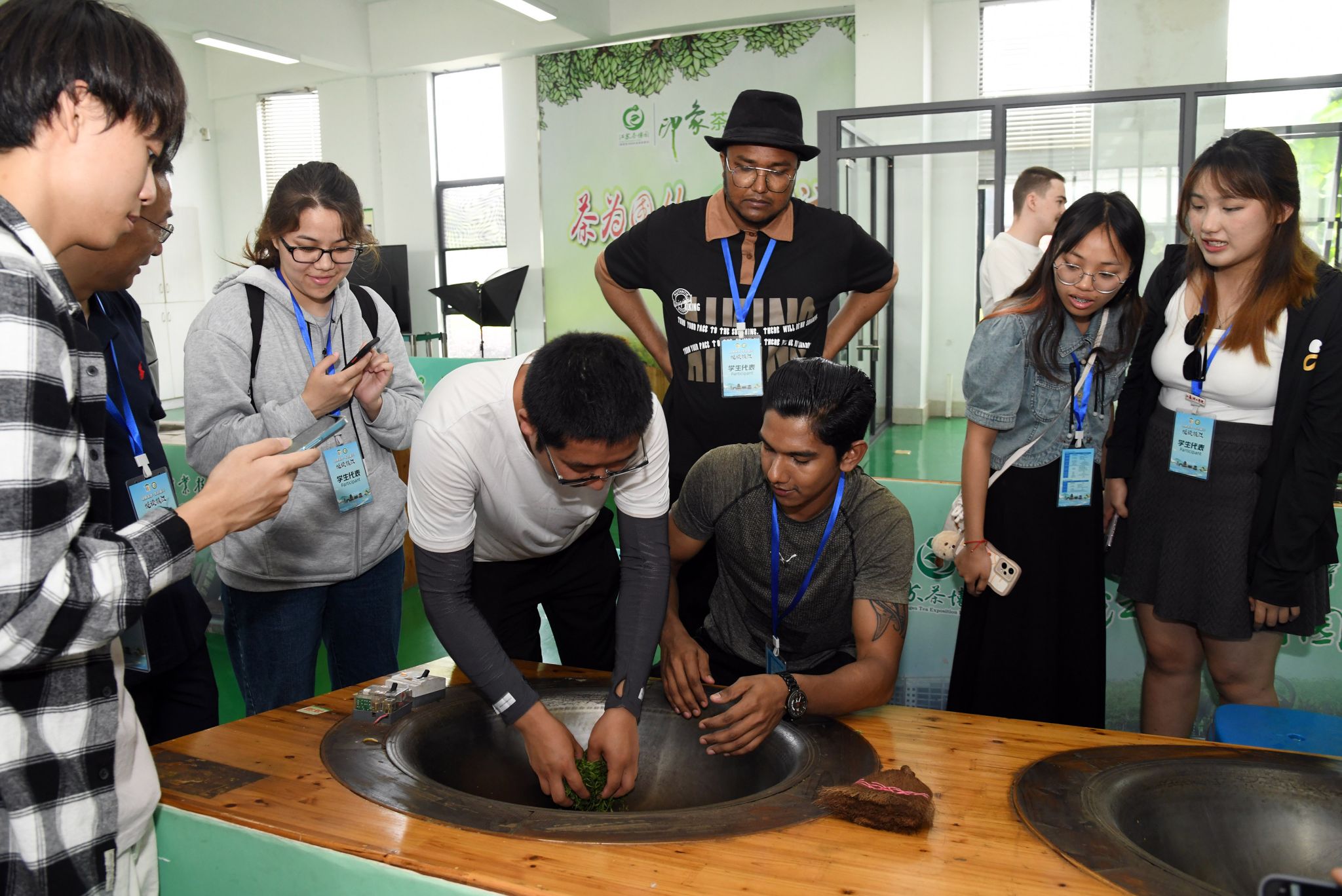 奇异果体育海外教育学院直属党支部书记王丽敏为留学生讲授茶文化知识,留学生前往江苏茶博园体验了采茶、制茶、品茶等全过程。