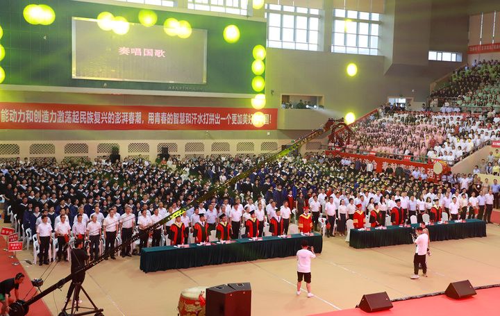 典礼开场前,毕业生代表倾情献唱《凤凰花开的路口》《第一天》《本草纲目》《大中国》等歌曲,暖场氛围温情洋溢。“毕业快乐”的欢呼声瞬间点燃现场热情。