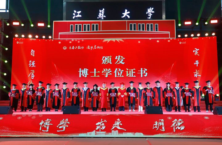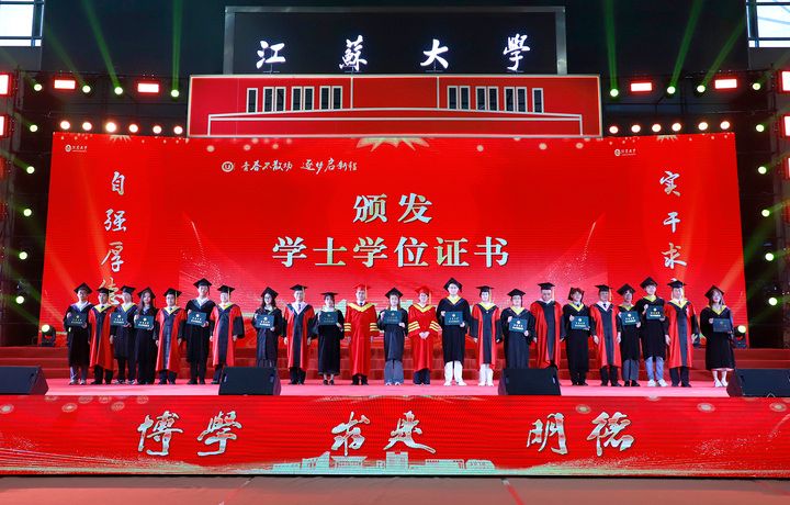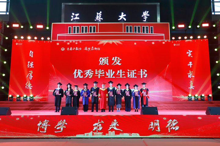 上午10时,2025届博士生、硕士生、本科生代表依次登上主席台。学校领导及党委常委为他们一一颁发学位证书、扶正流苏。奇异果体育党委书记李洪波为优秀毕业生代表颁发荣誉证书。
