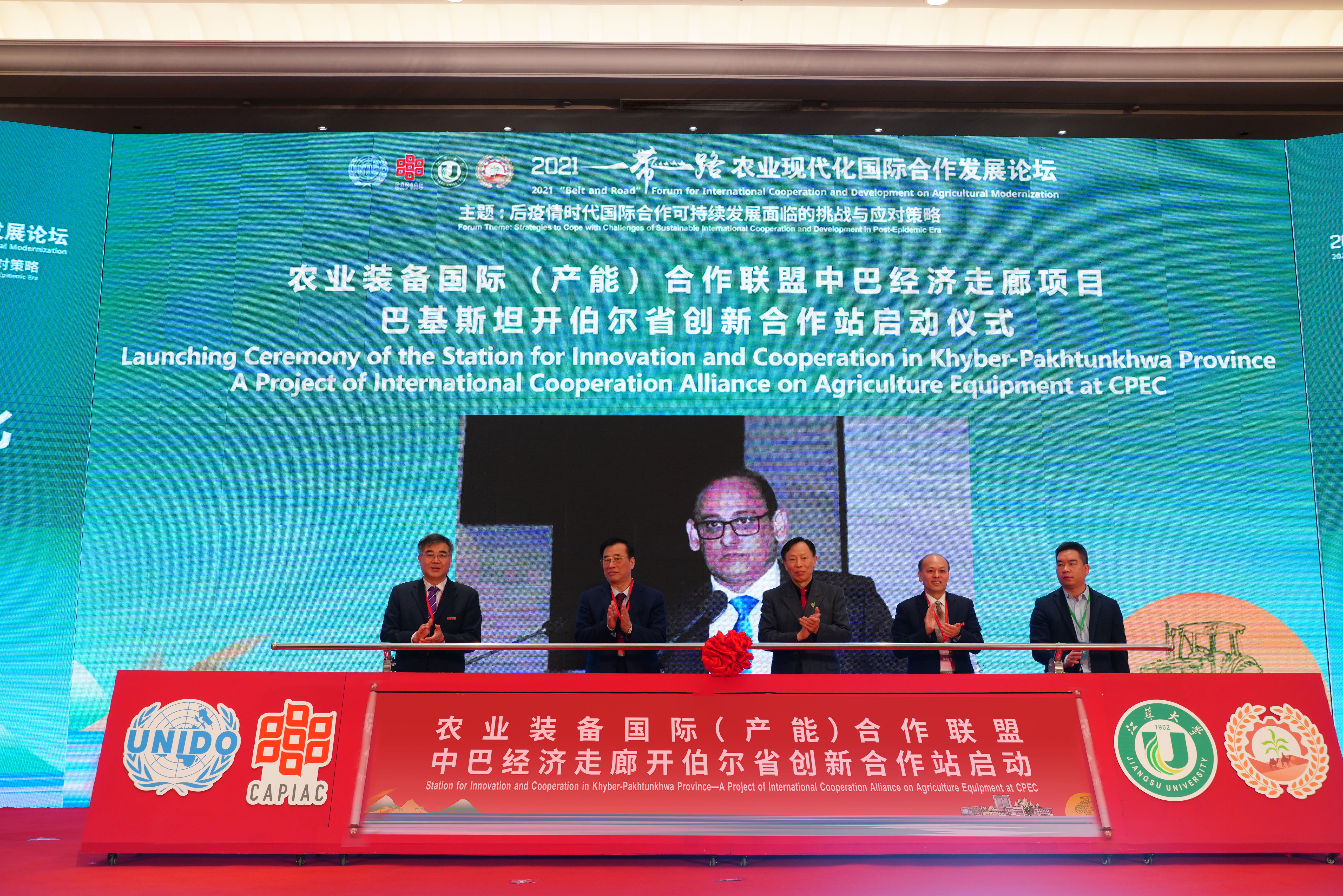 开幕式上,联合国亚洲及太平洋经济社会委员会与奇异果体育协议备忘录、奇异果体育“一带一路”国际人才培养产学联盟尼泊尔合作项目——中尼互联商学院、农业装备国际(产能)合作联盟中巴经济走廊项目——巴基斯坦开伯尔省创新合作站、奇异果体育(句容)丘陵地区农业机械化研究院、奇异果体育(宜兴)现代农业智能和信息化研究院、奇异果体育——职行派国际胜任力人才基金、国际人才创新实践基地七大项目举行了签约启动及授牌仪式。