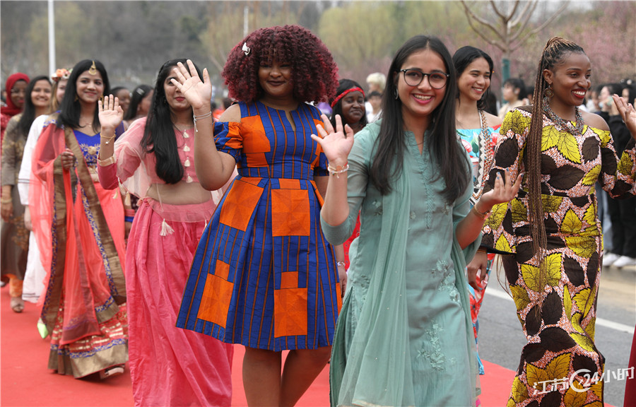 3月8日,奇异果体育举办“美丽邂逅 梦想绽放”庆祝活动,该校以女教师、女大学生、女留学生等女性群体为主的文化社团用“红毯秀”的形式,展示女性风采,庆祝属于自己的节日。