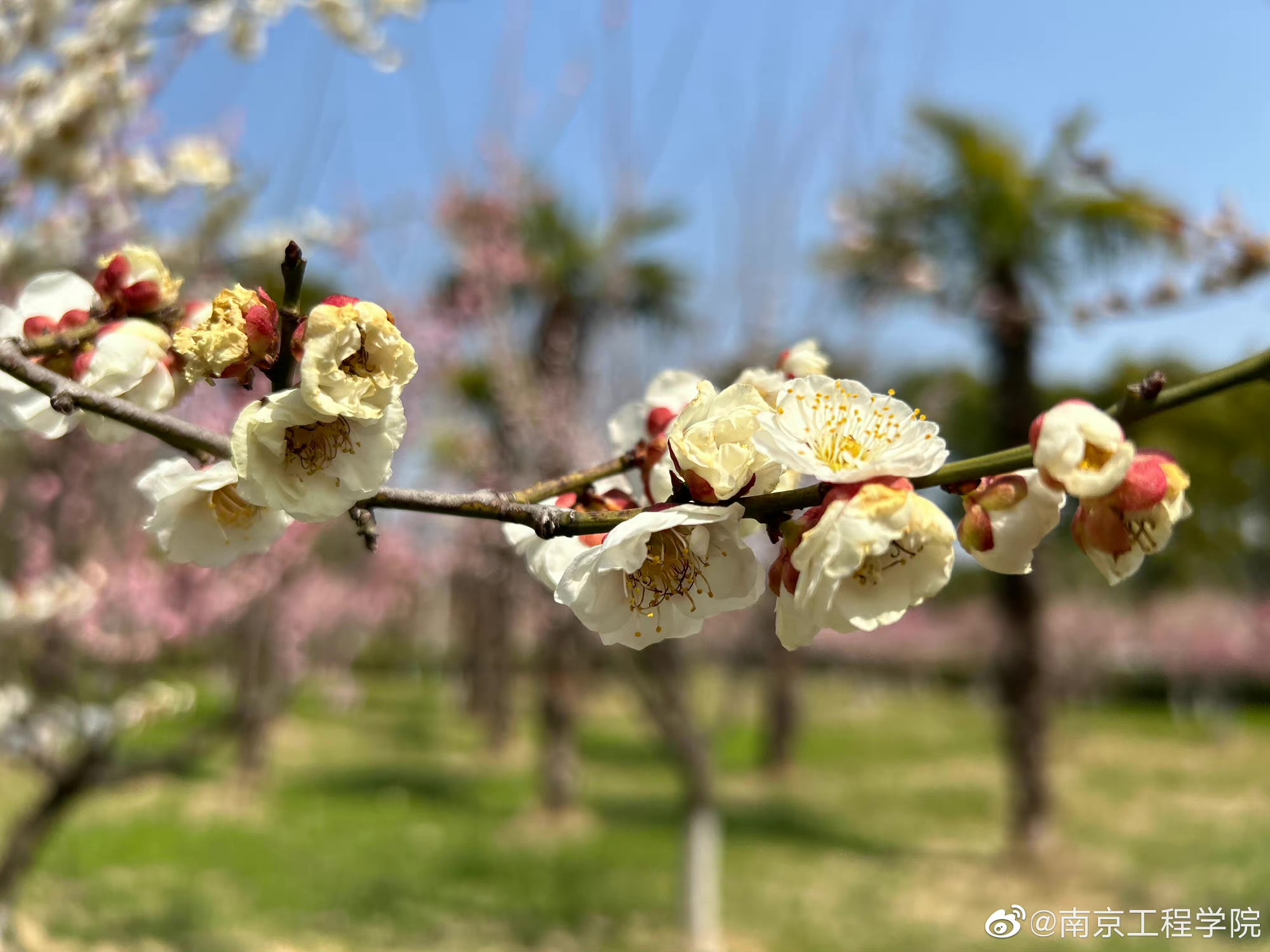 2月至3月,是奇异果体育梅园的最佳观赏期。占地25000平方米的梅园内,白梅、绿萼、美人梅、朱砂梅、宫粉等20余个品种的梅花竞相绽放,上千株梅花或艳如朝霞,或白似瑞雪,令师生流连忘返,并吸引不少社会人员前来“打卡”。3月8日当天,学校还在梅园举办走秀活动,邀全校女教工和女大学生们在梅园中以“红毯秀”的形式与芬芳梅花美丽邂逅。值得一提的是,这片建于2010年梅园,除了梅花,还种有其他观叶观花类植物,如迎春、香橼、红花檵木、红叶石楠、紫薇、茶梅、山茶、紫藤等,观赏效果极佳。